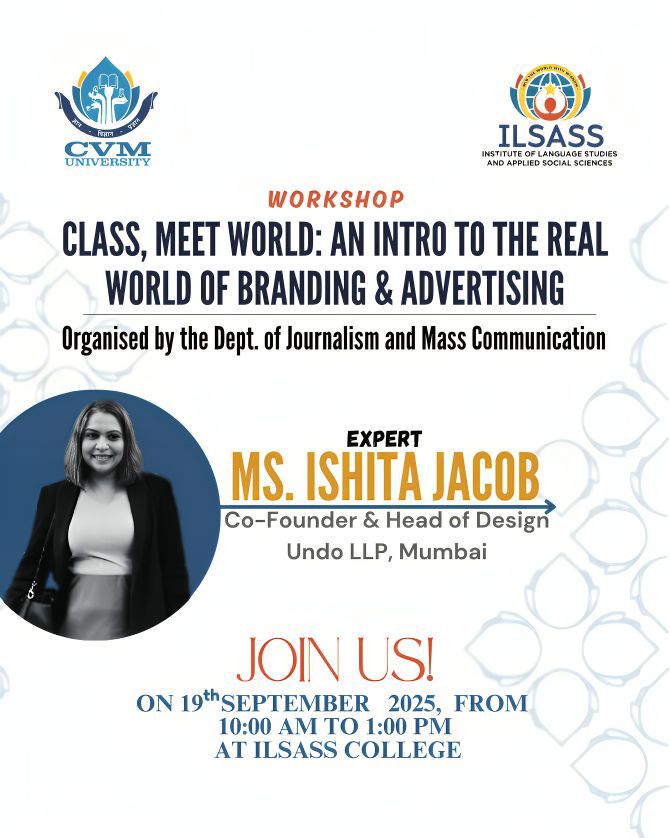 My journey at the Institute of Language Studies and Applied Social Sciences (ILSASS), CVM University, has been an inspiring and transformative experience that has shaped both my academic and professional life. From the outset, the institution provided me with platforms to explore my interests and hone my skills beyond the traditional classroom setting.