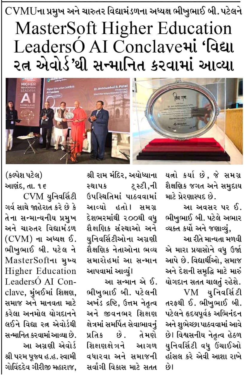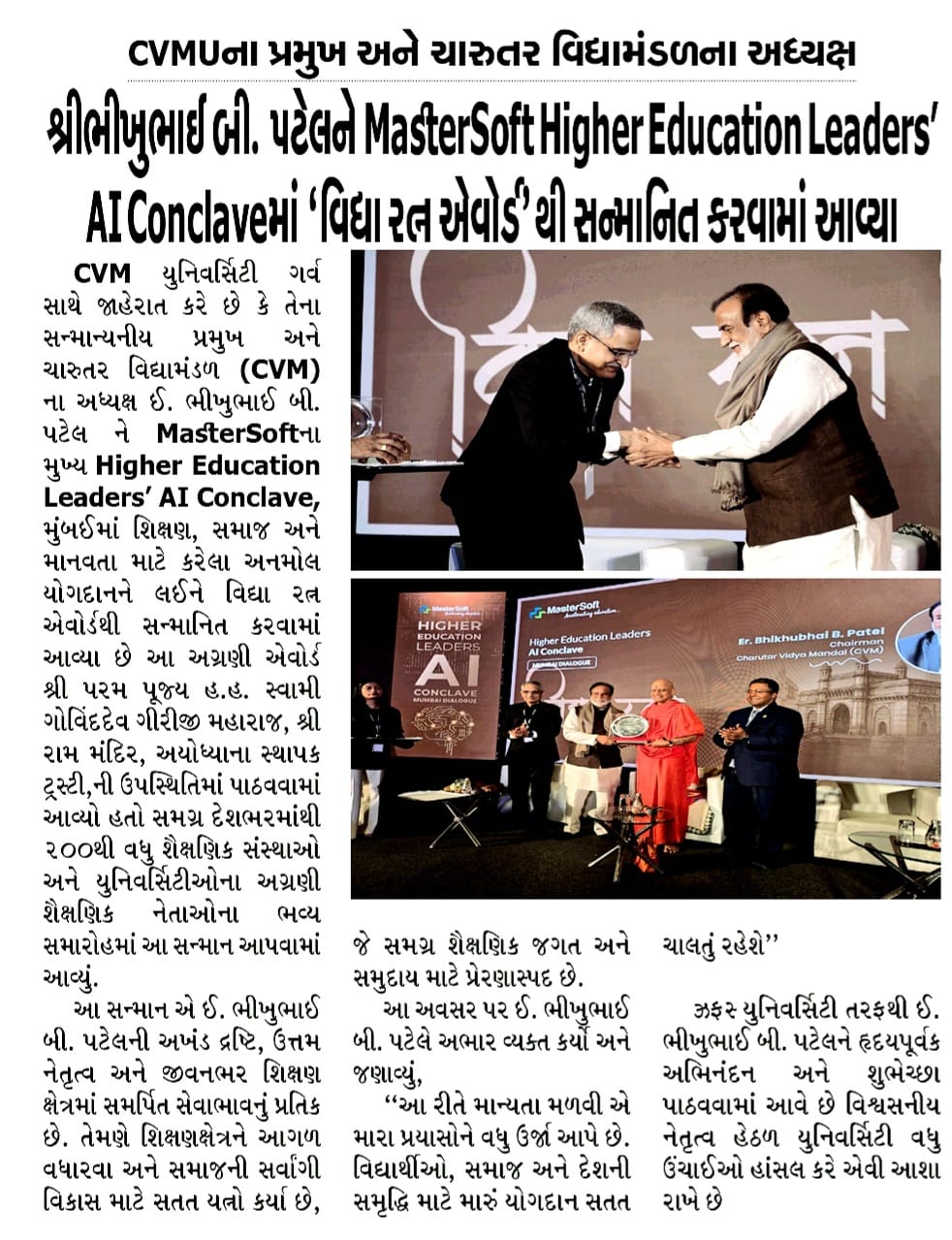 THE CHARUTAR VIDYA MANDAL (CVM) UNIVERSITY
