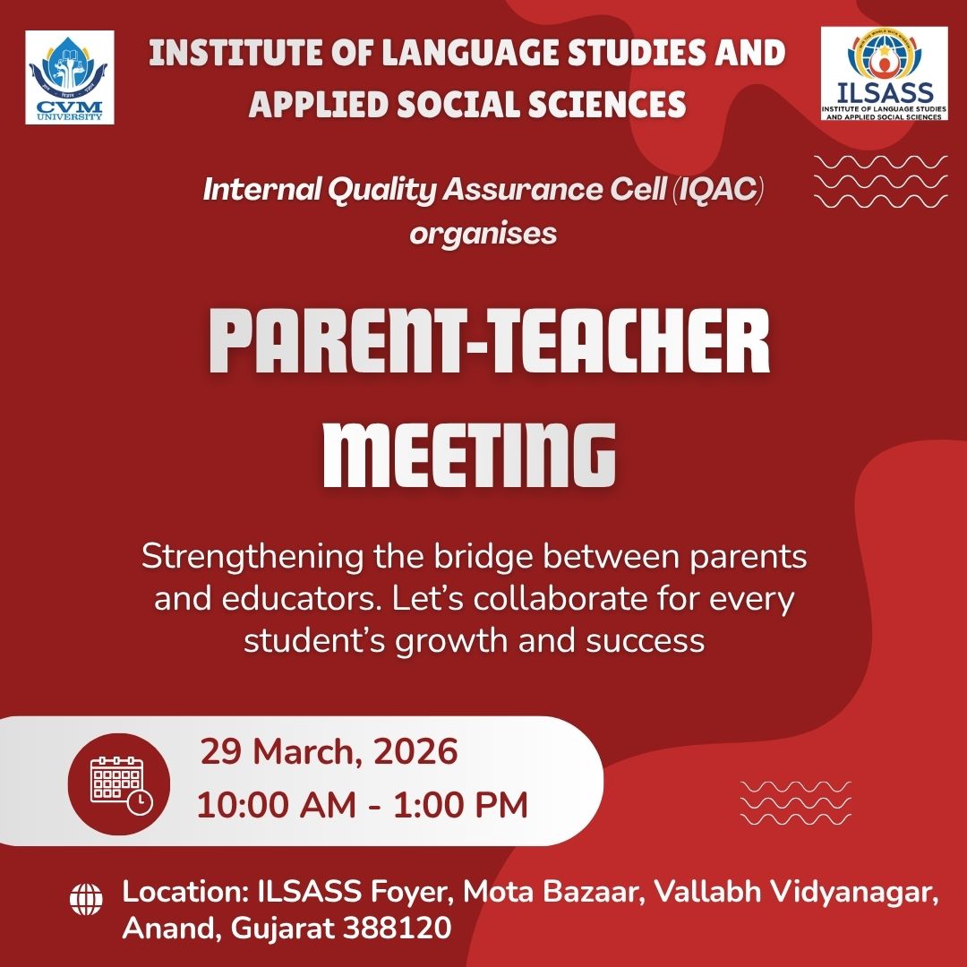 My journey at the Institute of Language Studies and Applied Social Sciences (ILSASS), CVM University, has been an inspiring and transformative experience that has shaped both my academic and professional life. From the outset, the institution provided me with platforms to explore my interests and hone my skills beyond the traditional classroom setting.